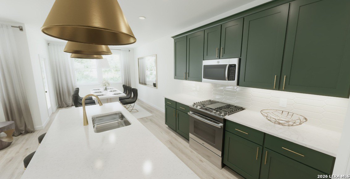 Property Description: This one-story home is designed for both everyday living and entertaining. The gourmet kitchen features built-in appliances, pendant lighting, and a center island, flowing seamlessly into the open breakfast area and family room. Large windows bring in natural light and views of the backyard. The private primary suite offers a luxurious retreat with an oversized shower, garden tub, double vanities, and a spacious walk-in closet. Three secondary bedrooms with walk-in closets provide plenty of space for family. Covered patio on the back of the home. This home is part of our Luxe Collection - where grandeur meets comfort. Rich colors and stunning surfaces add shine, while cotton and linen touches balance elegance with ease. Luxe is designed for fine dining, meaningful conversations, and everyday moments that feel beautifully elevated. This home is in Hennersby Hollow, with easy access to Hwy 90, Jungman Rd., major employers, SeaWorld, shopping, and top Medina Valley ISD schools. Community amenities include a pool, lazy river, playground, and activity lawn.