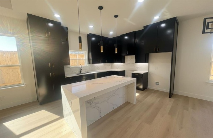 The kitchen is a showstopper with quartz countertops, a quartz waterfall island, abundant cabinetry for exceptional storage, and brand-new appliances, ideal for entertaining and everyday living. The primary suite offers a spacious retreat with a large walk-in closet and spa-inspired bathroom featuring dual sinks, marble countertops, and an oversized walk-in shower (no tub).