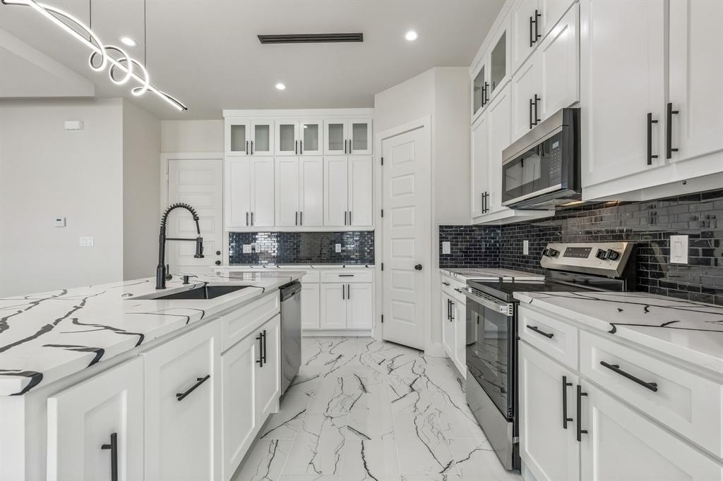 Property Description: Stunning new construction within 15mins of Downtown Dallas! This gorgeous modern features a spacious open-concept main level with sleek kitchen, living, & dining spaces that combine to create an entertainer's dream loaded with designer touches! Main level also features 4th bed or office space with full bath. Gorgeous kitchen featuring quartz counters, island with seating, and stainless appliances. Custom fixtures & LED lighting throughout. Head up the handcrafted oak tread staircase to find the spacious primary suite with balcony, 2 large bedrooms, and 1 additional full bath.