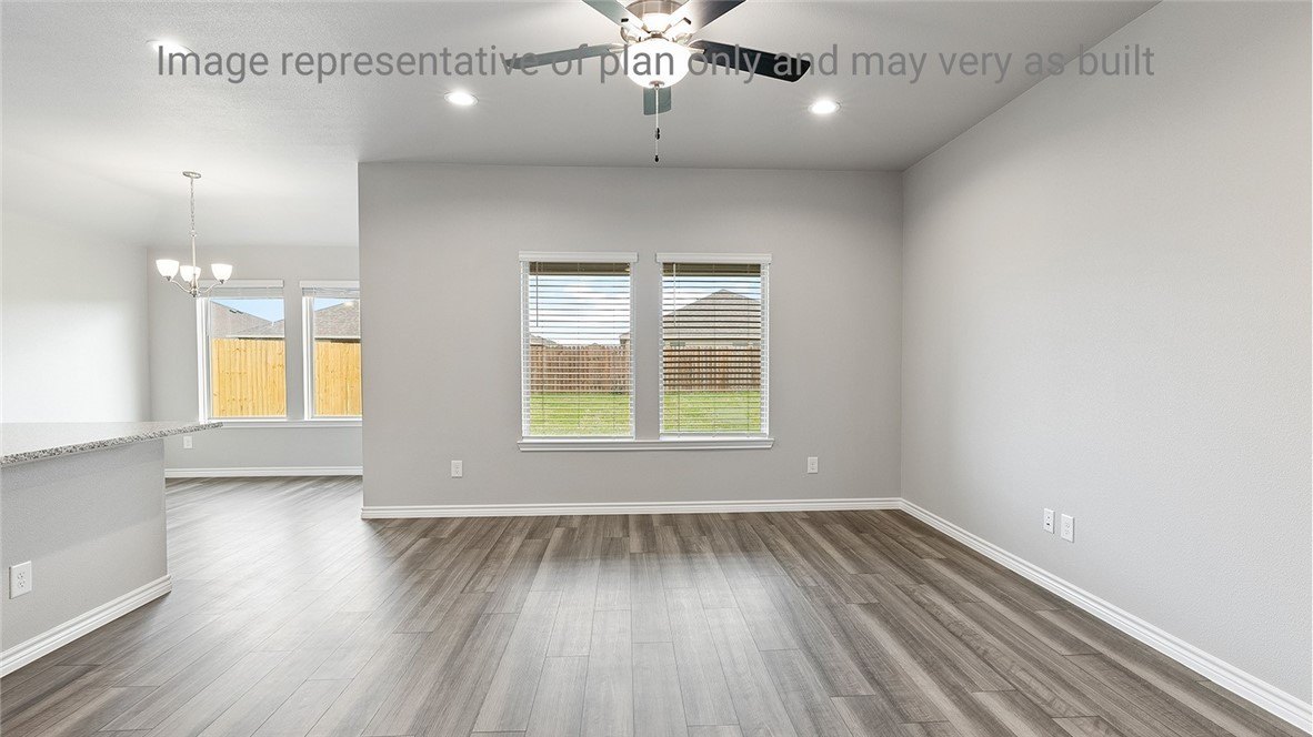 Property Description: This single-story, 3-bedroom, 2-bathroom home spans approximately 1,412 square feet of thoughtfully designed living space. Upon entering, you'll find the secondary bedrooms and bath just off the entryway, each featuring spacious walk-in closets, ensuring ample storage and privacy. The foyer seamlessly transitions into the expansive living room, kitchen, and breakfast area, creating an inviting open-concept layout perfect for gatherings. The kitchen, a true centerpiece, boasts modern finishes, including quartz countertops and sleek stainless-steel Whirlpool appliances. An island provides additional workspace and is ideal for entertaining guests. Adjacent to the kitchen, the breakfast area offers direct access to a covered patio, extending your living space outdoors. The primary bedroom is a serene retreat with an elegant bathroom featuring dual vanities with quartz counters, a large shower, and a generous walk-in closet. Enhancing the allure of The Bellvue is D.R. Horton's "Home is Connected" package, which integrates advanced smart technology. With this feature, you can effortlessly manage lighting, thermostat settings, and door locks via your smartphone, ensuring both convenience and security. Schedule your tour today and experience the remarkable blend of style and functionality that this stunning new home offers.