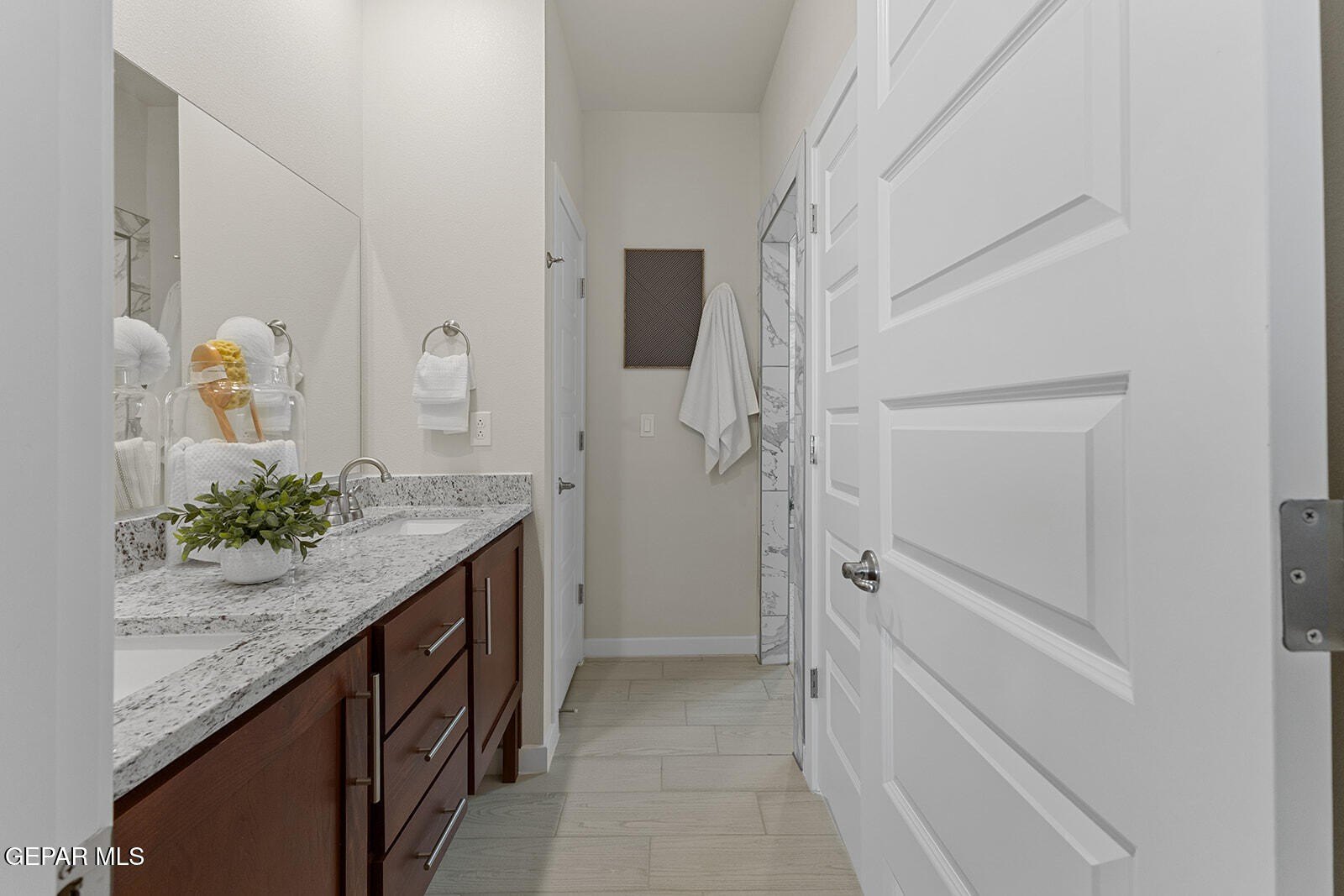 Property Description: !! Ask us about our AVAILABLE INCENTIVES!! **Visit our Model Home at 901 Indigo Sky, Open Daily, for more information and assistance.** The Georgia (R7881C) is a spacious single-story open floor plan featuring 4 bedrooms and 2.5 baths. The beautiful kitchen offers a large island, granite countertops, stainless steel appliances, and rich wood cabinetry with crown molding. The living and dining areas flow seamlessly, creating an ideal space for everyday living and entertaining. The zoned primary suite includes a walk-in closet and double vanity. Additional features include tile flooring in main living areas, shutters on major windows, refrigerated air, and a double attached garage. Located in Paseo del Este at Mission Ridge near parks, shopping, and restaurants. Photos are for demonstration purposes only and may not reflect the actual home.