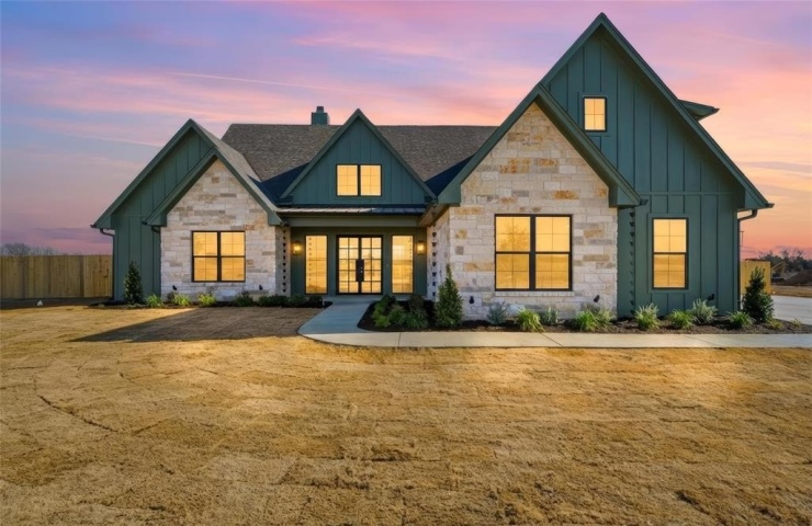 Property Description: Experience unparalleled luxury in this exquisite four-bedroom, three-and-a-half-bathroom estate nestled in the heart of China Spring, Texas. This remarkable property seamlessly harmonizes sophistication and comfort, offering a serene lifestyle on an expansive 1-acre lot. Step into a realm of refined elegance where soaring vaulted ceilings and a flowing open-concept layout greet you. The interior features opulent champagne gold fixtures and abundant natural light, creating a warm and inviting ambiance. A floor-to-ceiling fireplace stands as a magnificent centerpoint in the living area, elegantly paired with custom built-in cabinetry that provides generous storage and display options. The culinary dream kitchen is a standout feature, showcasing an abundance of artisan cabinetry designed to satisfy the most discerning gourmet enthusiasts. Thoughtfully designed, the home includes Jack and Jill bedrooms that combine convenience with privacy, while the secluded primary suite serves as a serene retreat, complete with dual vanities and soothing neutral tones that elevate the decor. Upstairs, an additional playroom provides a versatile sanctuary for entertainment or relaxation. The exterior of the home is as captivating as its interior. The striking forest green facade, accentuated by Austin white stone, beautifully complements the surrounding natural landscape. Rain chain gutters impart an elegant touch, while the fully fenced yard offers both privacy and security. Additionally, the property features a spacious two-car garage. Embrace the epitome of luxury living in this enchanting estate, perfectly situated to provide both seclusion and convenience in a picturesque rural setting. The exquisite design and extraordinary features position this property as a true treasure in China Spring.