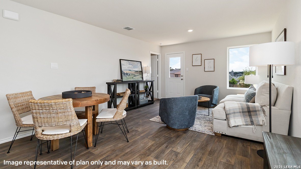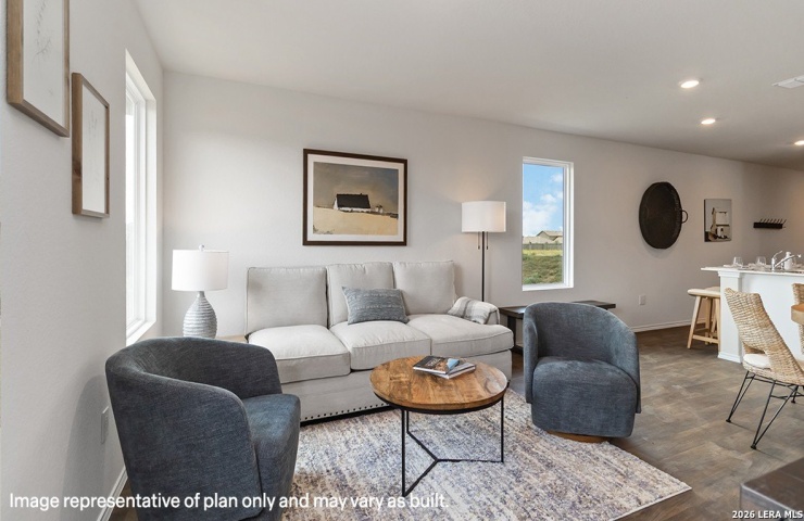 Property Description: The Atlanta is a charming one-story home featured at Sereno Springs in Converse, TX. Featuring 2 classic front exteriors, this 3 bedroom, 2 bathroom home also offers 1156 square feet of living space and a 2-car garage. A front porch (per plan) welcomes you into the home and opens to the gourmet kitchen which includes quartz counter tops, quality cabinets, stainless steel appliances and an open concept floorplan with the kitchen flowing seamlessly into the dining room and living room. The main bedroom has an attractive ensuite bathroom that features a quartz vanity countertop and quality cabinetry. Enjoy additional storage with a spacious walk-in closet located off of the primary bathroom. Your secondary bedrooms all feature quality carpet flooring and a closet, and can be used as bedrooms, offices, work out spaces or other bonus rooms. The possibilities are endless with The Atlanta floor plan. Additional features include sheet vinyl flooring in entry, living room, and all wet areas, quartz counter tops in all bathrooms and HOME IS CONNECTED base package. Using one central hub that talks to all the devices in your home, you can control the lights, thermostat and locks, all from your cellular device. Contact us today and find your home in Sereno Springs by clicking the text with us button or the request information button.