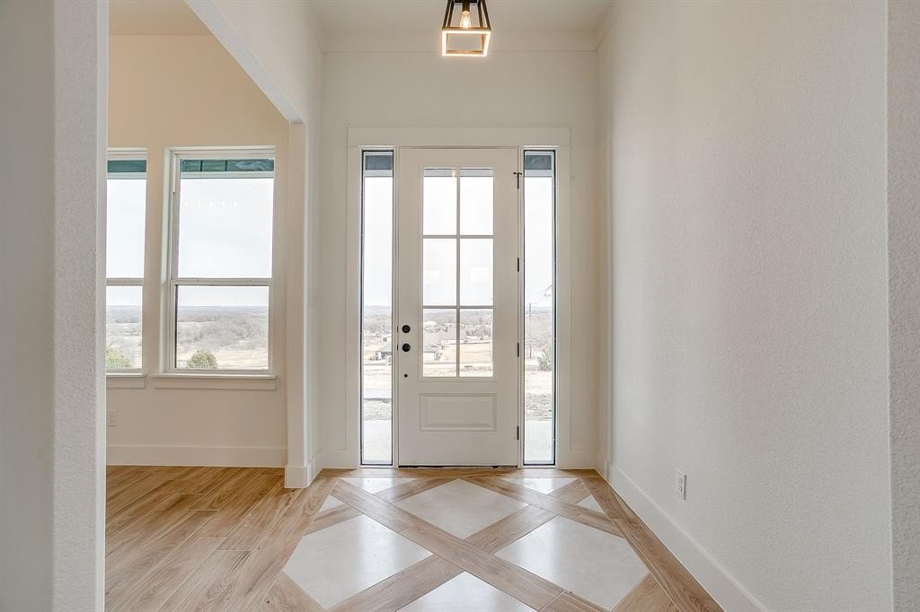 Property Description: Bank Owned New Build. Peaster ISD! 2+acres. in new suburban subdivision. Great corner lot. Lots of space and privacy. Beautiful modern home. Light and Bright open floorplan. Lots of natural wood throughout. Many modern elements but keeping in the traditional style. Craftsman-style interior doors. Cozy & inviting stone wood burning fireplace. Kitchen has solid surface counters with large farmhouse sink and oversized commercial grade range with exhaust. Nice sized laundry with tons of cabinet space and storage. Upstairs has a great bonus room with closet & bath. Back covered patio is large and fantastic for entertaining. Two ceiling fans and outdoor stone wood burning fireplace with entries to main living and to garage. Three-car garage with mudroom entry. Lots of room for a shop or a pool. High elevation with pretty views.