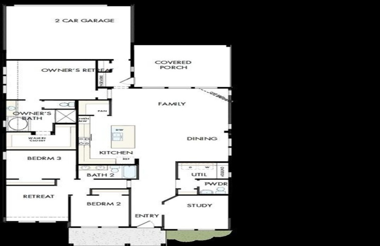 An enclosed study with French doors sits at the front of the home, and a versatile retreat between the two secondary bedrooms creates the perfect space for a gameroom, guest suite, or mother-in-law area.