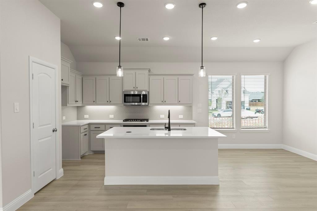 Property Description: MLS# 21184647 - Built by Pacesetter Homes - Ready Now! ~ This 4-bedroom, 3-bath home offers a smart layout with both a downstairs master suite and a separate guest suite, perfect for multigenerational living or hosting visitors. The open-concept family and kitchen area is ideal for everyday living and entertaining, with a functional mudroom drop zone just off the entry from the garage and luxury vinyl plank flooring runs through the main living areas for style and durability. The kitchen features painted gray shaker-style cabinets, white quartz countertops, matte black hardware, and a herringbone tile backsplash. Storage is made easy with pot and pan drawers under the gas cooktop and a pull-out trash drawer in the island. GE appliances and blinds throughout the home are included. The master suite includes a large walk-in closet and a spa-like bath with dual sinks and a glass-enclosed tile shower. Upstairs, a flexible loft or game room provides extra living space, plus two secondary bedrooms. Your Pacesetter Home comes equipped with a suite of smart features designed to enhance everyday living.-Ring Video Doorbell-Brillant Smart Home System to control lighting and music-Honeywell Smart T6 Thermostat for energy savings-WiFi-enabled Garage Door-Rainbird Wifi-capable Sprinkler System Plus, enjoy added support with White Glove Service a personalized, post-closing appointment to get all your smart home features connected and ready to use.