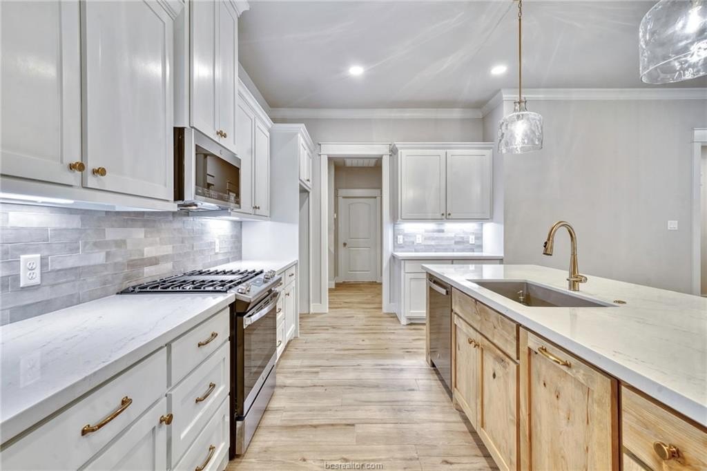 Property Description: Move-in Ready! This beautiful home offers 4 spacious bedrooms and 2.5 bathrooms with thoughtful upgrades throughout. Step inside and you'll immediately notice the details that make this home special-raised panel interior doors, crown molding, and tile flooring that add a touch of elegance and openness to every room. The kitchen is a showstopper, featuring quartz countertops, a gas range with custom vent hood, painted custom cabinets, tile backsplash, under-cabinet lighting, and plenty of space for cooking and entertaining. The bathrooms are just as impressive with tile floors, quartzite countertops, and custom cabinetry. The primary suite boasts a spa-like bath with a separate tub and shower plus all the same high-end finishes. Outside, the home includes full sod, front and back landscaping with a sprinkler system, and full gutters. The exterior is a stylish mix of brick and stone, while the covered back patio comes prepped with gas and electrical hookups-for your future outdoor kitchen. Built with advanced framing techniques and an engineered foundation, this home combines quality construction with custom design features. Don't wait-act now to make this home yours!