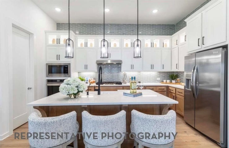 Property Description: Charming 1 story brick home featuring 11’ ceilings and open concept floor plan. Kitchen features tile backsplash with gas cooktop, expansive quartz island and walk in pantry. Enjoy entertaining on the extended covered patio area. Primary Suite features a beautiful box window, large walk-in closet, freestanding tub with separate shower and dual vanities with knee space.