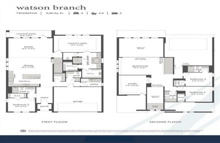 Property Description: NORMANDY HOMES TRIOMPHE floor plan. Discover the Triomphe home plan at Watson Branch on a corner lot - a stunning blend of style and functionality. With over 3,000 square feet of space, this layout features 4 bedrooms and 4.5 baths, offering plenty of space for everyone. The downstairs guest bedroom with its private ensuite bath is ideal for guests and is situated away from the owner's suite for privacy. For added warmth and ambiance, there's an option to include a cozy fireplace, making the home even more inviting! Upstairs, you'll find two secondary bedrooms, each with their own bathrooms and a media and game room, creating the perfect space for movie nights, game days, and fun with friends and family. Experience luxury living with thoughtful design in this beautiful home.