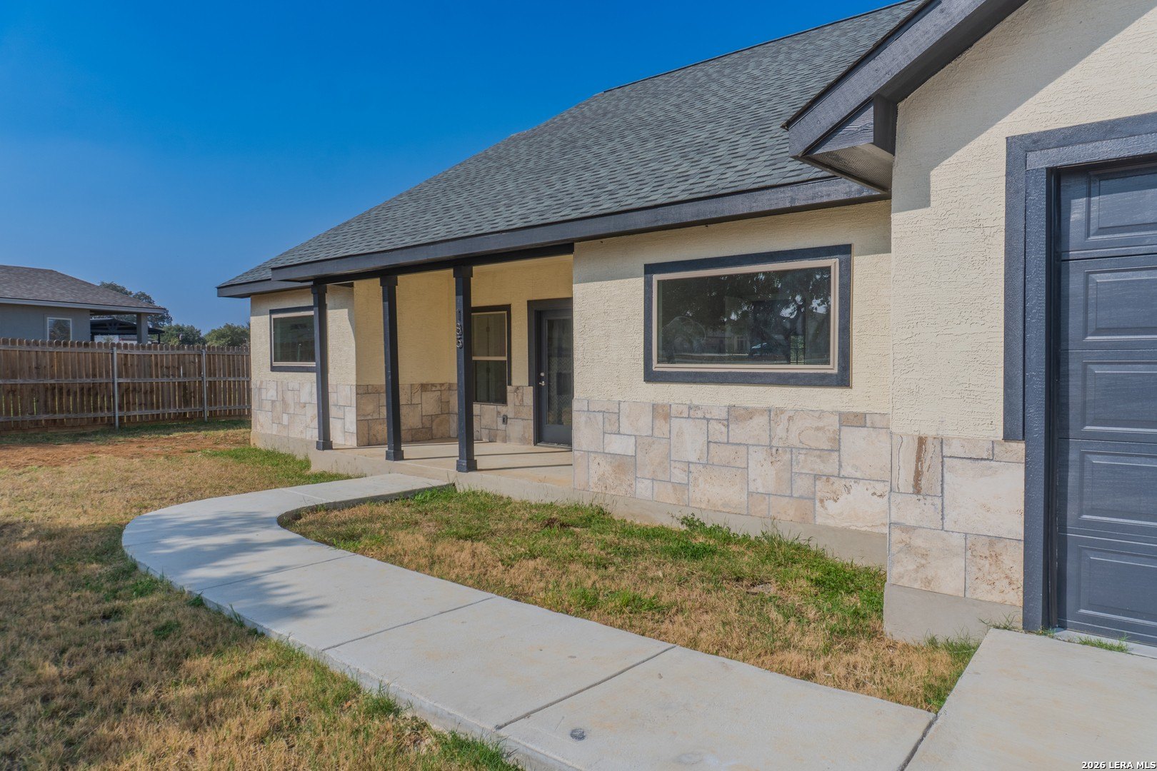 Property Description: Brand-new ranch-style home, situated on a quiet cul-de-sac just minutes from San Antonio. Set on a spacious 0.75-acre lot in a community of large homesites, this property offers peaceful surroundings with convenient city access. The open-concept layout features soaring ceilings, abundant natural light, and stunning porcelain flooring throughout the main living areas. The living room includes an electric fireplace and scenic countryside views. The island kitchen is equipped with generous cabinetry, ample prep space, and a pot filler over the stove. Recent enhancements include custom closet shelving, added pantry shelving, and additional improvements that elevate both functionality and finish. Bedrooms and closets feature upgraded luxury vinyl flooring for durability and style. The primary suite offers a soaking tub, separate shower with newly installed sliding barn-style glass door, and a spacious retreat-like layout. Three additional bedrooms plus a dedicated office provide flexible living options. Enjoy the covered back patio with scenic views. USDA financing eligible with potential $0 down. Seller offering buyer closing cost assistance with preferred lender. New construction on acreage without the wait - ready for its first owner.