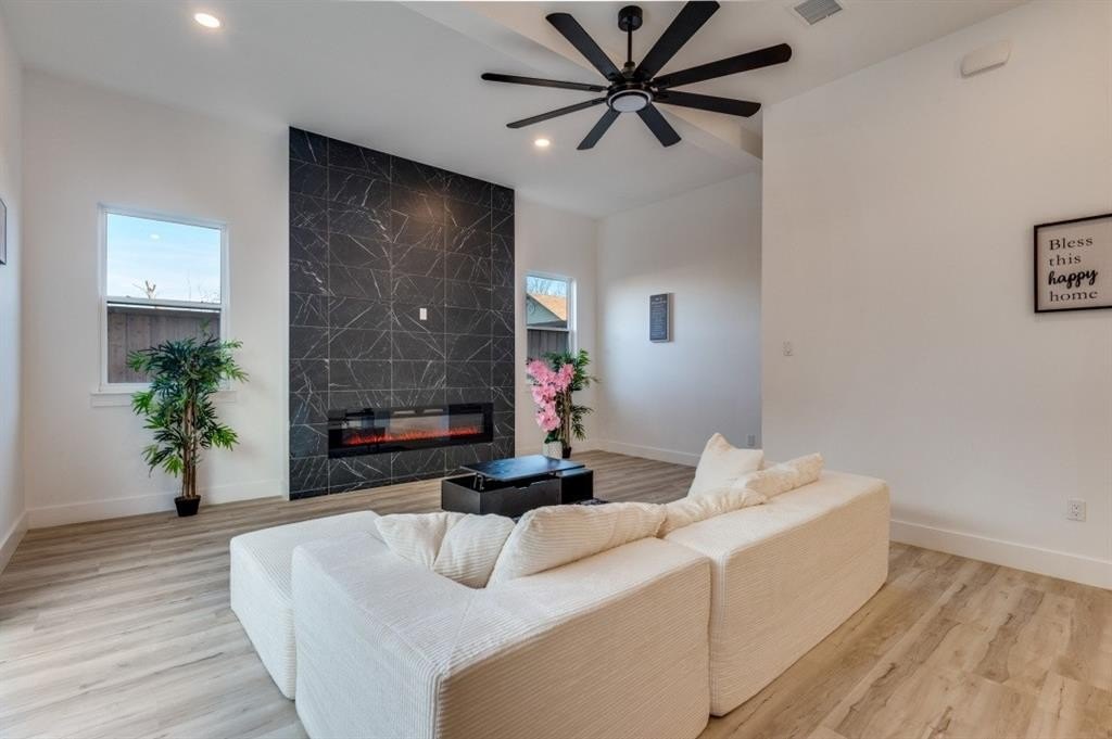 Property Description: Single Family Home with Interior panoramic views of Downtown Dallas set this exceptional contemporary home apart. Located on a street lined with newly built residences, this thoughtfully designed property blends modern luxury with functional living across multiple expansive levels. Priced below appraised value!