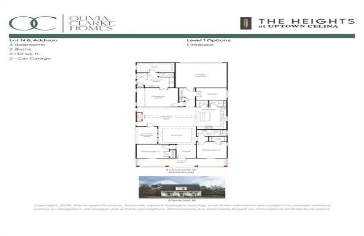 Property Description: Welcome to The Addison plan, new construction by Olivia Clarke Homes, in The Heights at Uptown Celina—perfectly located in the heart of downtown and just a short stroll to shops, dining, the library, and more! This beautifully designed single-story home offers 2,130 square feet of open-concept living with 3 spacious bedrooms, 2 modern bathrooms, and a 2-car garage. A full-width front porch invites you to relax or entertain neighbors, friends, or simply enjoy your morning coffee. Inside, the vaulted ceiling in the family room adds an airy, open feel, and the kitchen and living area flow seamlessly together creating the perfect space for hosting or cozy movie nights around the fireplace. The kitchen has all the features you want, including quartz countertops, stainless steel appliances, a gas range, soft-close doors and drawers, a walk-in pantry, plus dedicated pot and pan drawers and a built-in trash drawer. The private primary suite features a spa-like bath and a walk-in closet, while two additional bedrooms offer flexibility for guests, work, or play. And don’t miss the laundry room—it’s packed with cabinetry, a built-in sink, and so much space, it feels more like a prep kitchen than a utility room. If you're looking for comfort, style, and an unbeatable location, The Addison has it all.