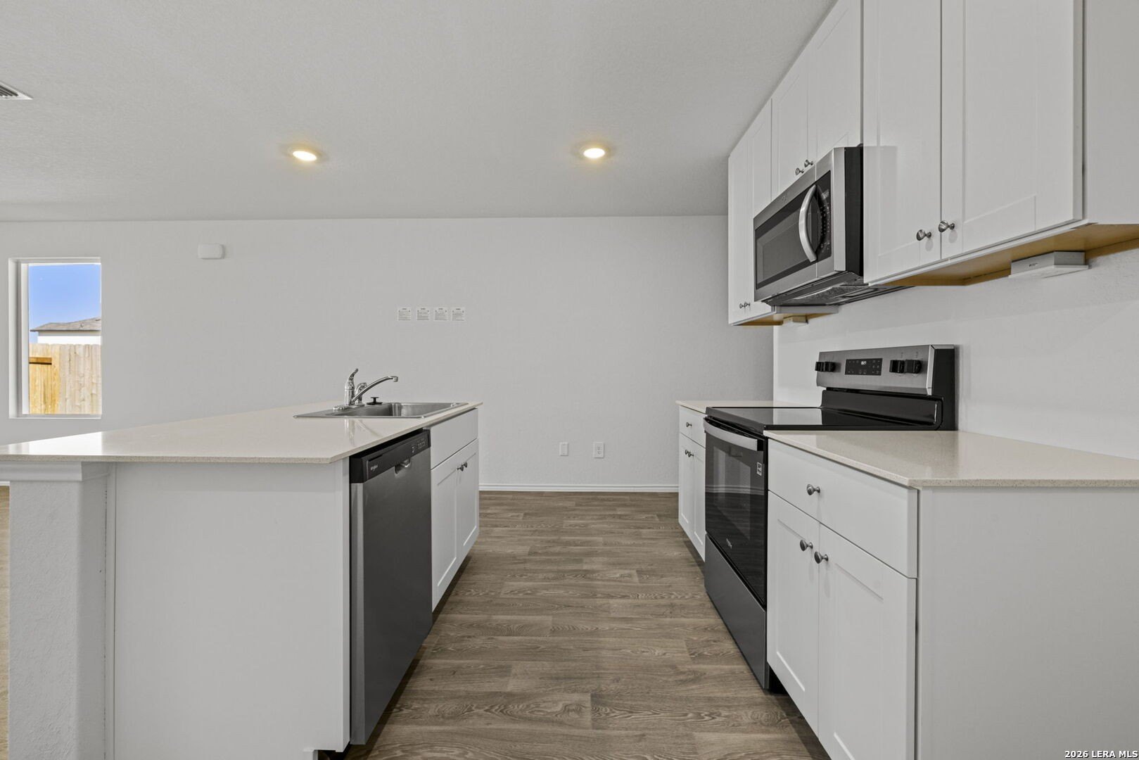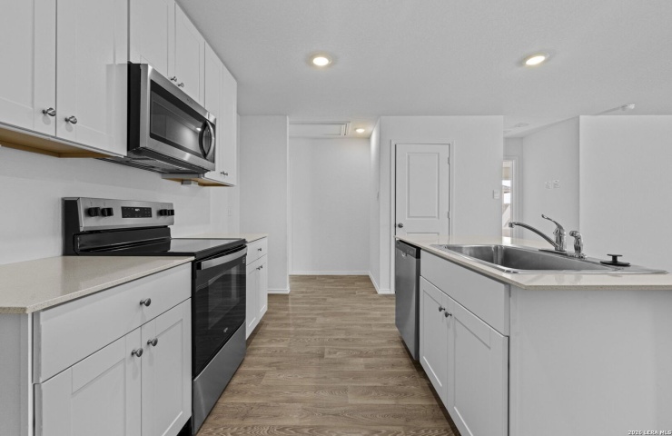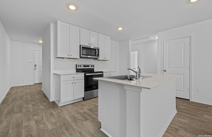 Property Description: Welcome to the Emma floorplan in Arroyo Ranch in Seguin, Texas - a thoughtfully designed one-story home offering 4 bedrooms, 2 bathrooms, and 1,573 square feet of comfortable living space with a 2-car garage. Step inside from the inviting front porch into a welcoming foyer that opens to a spacious open-concept living area. The kitchen overlooks the dining and family rooms, creating a seamless space for entertaining and everyday living. You'll love the oversized island with stainless-steel sink, quartz countertops, picture-frame cabinets, pantry closet, and stainless-steel appliances. Two secondary bedrooms and a full bathroom are located just off the kitchen, along with a utility room that connects directly to the garage - perfect for a functional mudroom setup. A third secondary bedroom sits off the dining area. All bedrooms include carpet and closets with wood shelving. The secondary bath features a shower/tub combination and a cultured marble vanity with trench sink. Privately situated at the back of the home, the primary suite offers a relaxing retreat with a walk-in shower, cultured marble vanity with trench sink, and a spacious walk-in closet. Discover comfort, style, and smart living at Arroyo Ranch - schedule your tour today. *Seller is willing to assist with closing costs or a rate buy-down through preferred lender with an acceptable offer.**