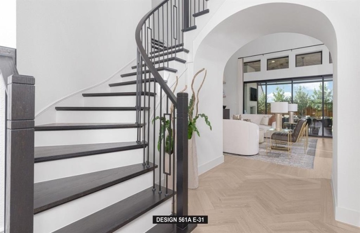 Property Description: Former Model Home. Two-story entry with 20-foot ceiling. Hardwood floors throughout living areas. Home office with French doors set at entry. Two-story family room and dining area with a sliding glass door. Kitchen has an island with built-in seating space and a spacious walk-in pantry. Primary suite with a wall of windows. Primary bath has a double door entry, dual vanities, a freestanding tub, a separate glass-enclosed shower and two walk-in closets. A guest suite with private bathroom just off the front entry. Second floor hosts a large game room, a media room with an additional storage space, and secondary bedrooms including a guest suite with a full bathroom and walk-in closet. Covered backyard patio with an exterior fireplace and grill. Model home upgrades include accent paint, drapes, alarm system, sprinkler system, and additional landscaping. Three-car garage.