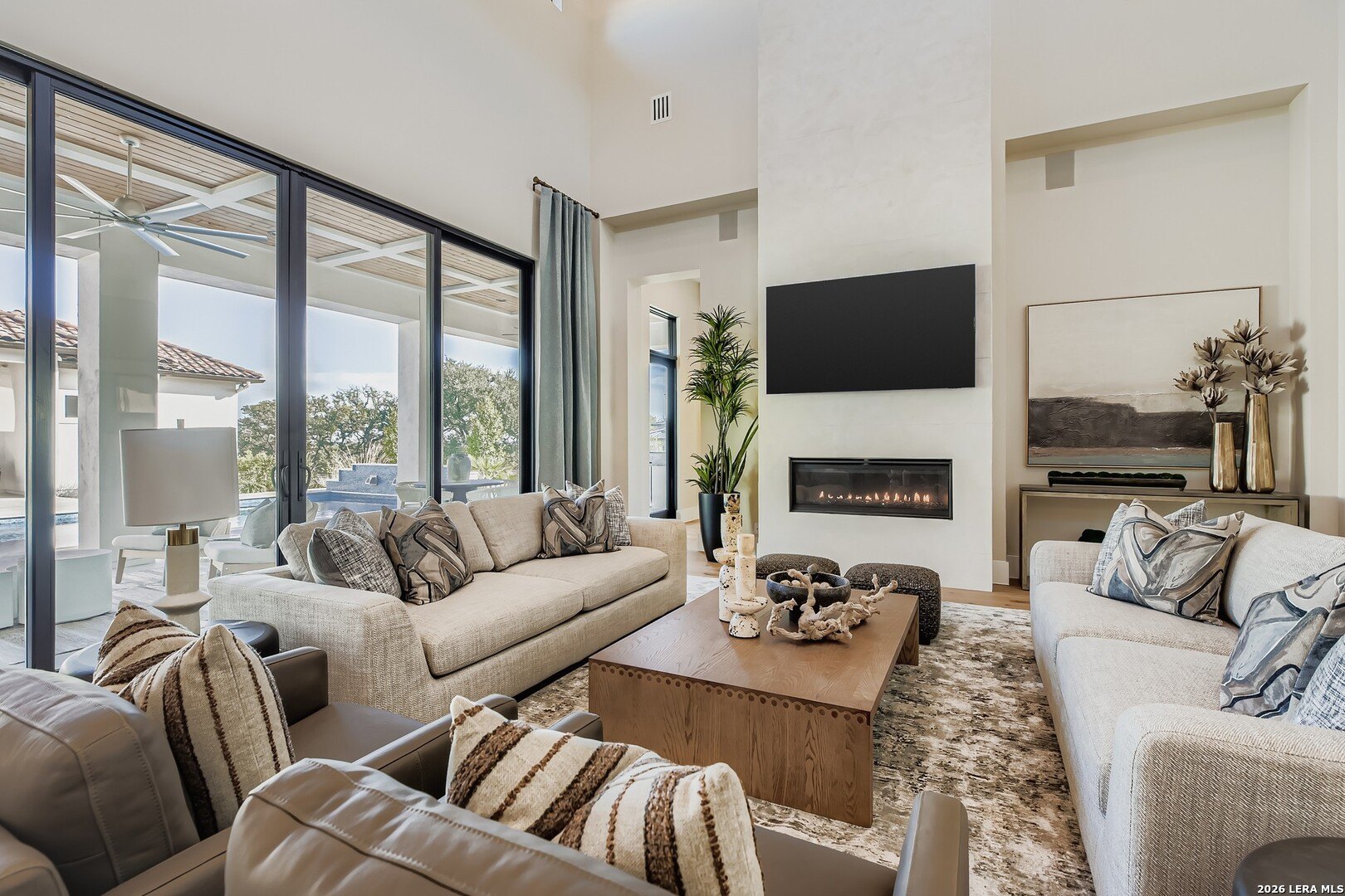 Property Description: Welcome to this remarkable residence, a custom-built sanctuary that exemplifies McNair Custom Homes' uncompromising approach to residential design. Renowned home designer Gustavo Arrendondo's vision translates into 4,896 square feet of sophisticated living, where every element - from the suspended ceilings to hand-troweled wall finishes - reveals a deliberate attention to craft. The result is a home that reads as a unified expression of intentional design rather than a collection of high-end amenities. The entry announces the residence's character through substantial double doors of iron and glass, drawing natural light deep into the home while establishing a threshold that immediately conveys distinction. A decorative floor treatment grounds this arrival experience, preparing guests for the refined spaces beyond. From here, the home branches naturally into distinct zones - each thoughtfully proportioned and connected through flowing sightlines that prevent the generous square footage from ever feeling oversized. Your bound to see designer touches everywhere as you make your way through the home, as Karen Dietz Interiors created a delight for the senses and a welcoming vibe second to none. The kitchen became the proving ground for the home's quality philosophy. Thermador gas cooking, quartz countertops, and glass-fronted cabinetry sit alongside a pot filler and an island substantial enough to accommodate both cooking and gathering. This isn't kitchen theater; it's an ingredient in a working home, one where serious cooking is supported by serious infrastructure. Natural light floods the adjacent dining room, a space generous enough for both everyday meals and entertaining, underscoring the home's flexibility between intimate moments and larger social occasions. The primary bedroom deserves its own consideration. Clerestory windows ensure abundant daylight without sacrificing privacy - a nuance that elevates the space beyond standard primary suite conventions. The ensuite bathroom furthers this elevation through a freestanding tub positioned to capture natural light and a walk-in shower outfitted with multiple shower heads including a rain fixture, creating the kind of daily ritual experience that transforms the routine into restoration. Beyond the primary spaces, a secondary living area with wetbar, wine and beverage refrigeration, ice machine, and both cabinetry and open shelving reveals a home designed for genuine hospitality. This zone, separate from the kitchen yet functionally connected, allows gatherings to flow naturally while keeping the primary living spaces separate from entertainment areas. The outdoor experience is not forgotten in this home and receives equivalent sophistication. A large covered patio overlooking an inground pool and raised spa becomes an extension of the home's living footprint rather than an afterthought. Keith Zars Pools executed the pool and spa with the same caliber of detail evident indoors, creating the kind of cohesive outdoor environment that invites regular use. A complete outdoor kitchen anchors the patio, ensuring that entertaining transitions seamlessly from interior to exterior spaces. Guests will feel like they're attending a gala event as they pull up to the home and you'll feel the stress of the day slipping away as you pull into the circular driveway inlaid with brick pavers - all that's missing are the paparazzi. An oversized three-car garage provides ample space for your vehicles and storage needs, while extensive landscaping integrates the home thoughtfully within its setting rather than simply occupying the land. The cast stone fireplace and vent hood serve as visual anchors, their architectural presence justifying their prominence without appearing gratuitous. This home functions as a comprehensive statement about what residential design achieves when every decision receives genuine consideration.