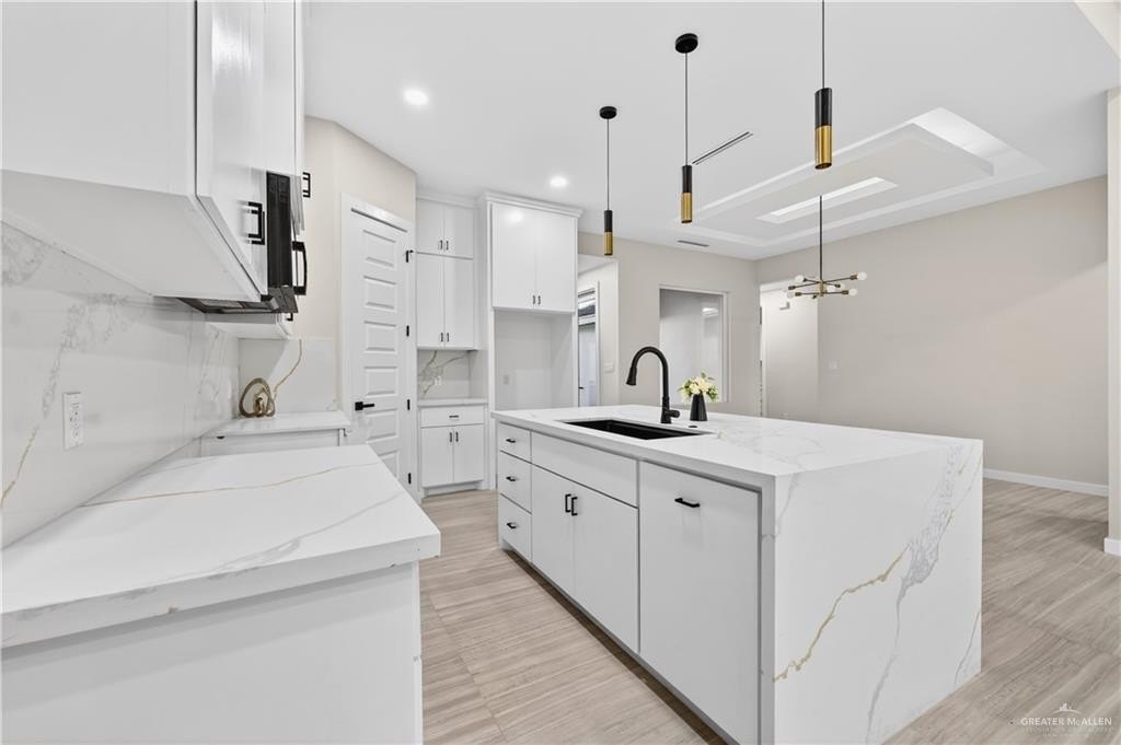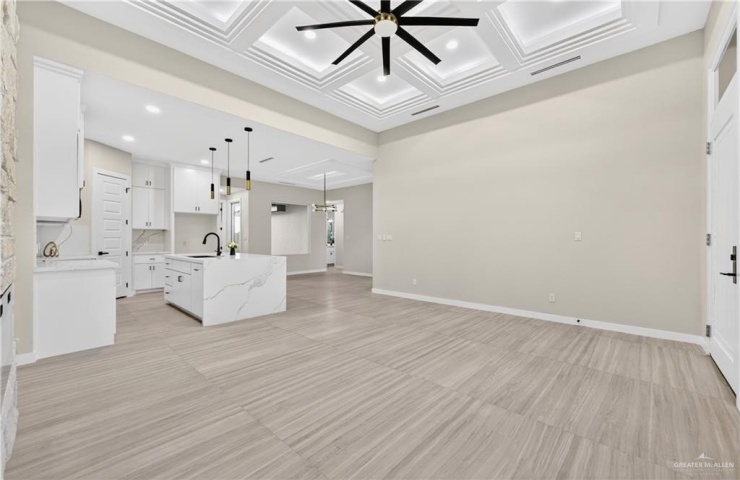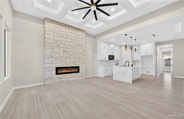 Property Description: Beautiful New Construction in Sol Alegre Subdivision. This stunning new home in Edinburg features 3 bedrooms, 2 bathrooms, a one-car garage, and a functional floor plan designed for comfort and style. The interior offers an open layout with an indoor laundry room and a dedicated mudroom area for added convenience. The kitchen showcases warm tones, custom finishes, and modern design, flowing seamlessly into the living area where an electric fireplace with a stone accent wall creates a cozy focal point. Elegant fixtures throughout the home add a touch of sophistication and elevate the overall look. Step outside to a covered patio and spacious backyard, perfect for BBQs, entertaining, or relaxing outdoors. Located in the growing Sol Alegre Subdivision in Edinburg, this home blends style, function, and thoughtful design-ready to welcome its new owner!