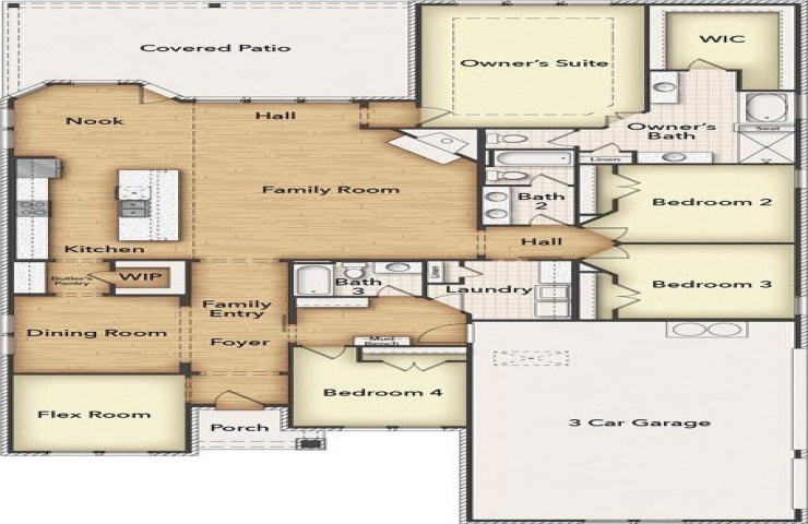 Property Description: Estimated August 2026 completion! Ask us about our Trade In Trade Up program, we can buy your home! : Step into the Bluebonnet by Riverside Homebuilders and embrace a lifestyle of comfort and functionality. With 4 bedrooms and 3 bathrooms sprawled over 2,686 square feet, this single-story haven offers ample space for every member of the family. As you enter through the inviting porch, the airy foyer sets the tone for the home's open layout. To the left, a flex room awaits, beckoning to be transformed into your ideal space—whether you envision a home office, gym or hobby room. Continue through the foyer to discover the heart of the home—a luminous dining room bathed in natural light. Beyond lies the main living area, a seamless fusion of the expansive kitchen, cozy family room featuring a fireplace and a charming nook adorned with picturesque windows. On the right wing of the home, privacy awaits with three traditional bedrooms and a breathtaking owner's suite. The owner's retreat boasts a spacious walk-in closet and a spa-like bathroom, offering a sanctuary for relaxation. Convenience is paramount with the laundry situated just off the bedrooms, accompanied by a mud bench near the garage entrance. To embrace the beautiful DFW weather without having to leave your home, step outside to the generous covered patio—where endless possibilities for outdoor enjoyment await. With its thoughtful design and inviting atmosphere, the Bluebonnet embodies the epitome of charming Texas living for all families alike.