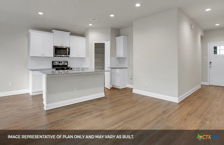 Property Description: MARCH/APRIL ESTIMATED COMPLETION. LOTS OF COMMUNITY AMENITIES AND ELEMENTARY SCHOOL IS IN THE COMMUNITY! The Bellvue is a single story home that offers 3 bedrooms, 2 bathrooms and 1,407 sq. ft. of living space. As you enter the long foyer, you'll pass both extra bedrooms, bedroom 2 and bedroom 3, as well as the extra bathroom, bathroom 2. The secondary bedrooms both feature large walk in closets. Next you'll enter the open concept kitchen which features stainless steel appliances, Quartz countertops, decorative tile backsplash, and a walk-in pantry. The large kitchen island overlooks the family room which has plenty of natural lighting. The dining room is next to the kitchen and leads out to the large covered patio. The main bedroom, bedroom 1, is located off the family room and features a huge walk-in closet and large walk-in shower. The Bellvue also includes full yard professional irrigation and landscaping complete with Bermuda sod. This home includes our America's Smart Home(R) base package which includes the Alexa Voice control, Front Door Bell, Front Door Deadbolt Lock, Home Hub, Light Switch, and Thermostat.