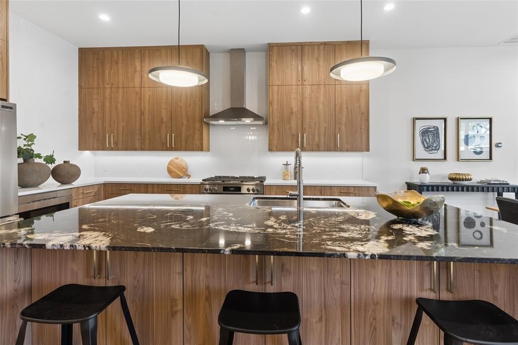 Property Description: Stunning New Construction Modern Home in Prime Dallas Location. Welcome to this beautifully designed, newly constructed modern single-family attached home offering a perfect blend of contemporary luxury, thoughtful functionality, and an unbeatable location. Situated near Inwood and Lovers Lane, and just minutes from premier restaurants, shopping, and the Dallas North Tollway, this 3-bedroom, 2.5-bath residence puts you in the heart of convenience and style. From the moment you step inside, you’ll notice the attention to detail and high-end finishes that define this home. Solid white oak flooring flows seamlessly throughout, adding warmth and sophistication to the clean, modern aesthetic. The open-concept kitchen is a chef’s dream, featuring custom European-style cabinetry, sleek quartz countertops, and premium stainless steel appliances—including a built-in microwave, wine refrigerator, and a gas stove. A built-in trash pullout system and thoughtfully integrated storage elevate both form and function. All bathrooms exude modern elegance with floating vanities, designer tile, and contemporary wall-mounted commodes, creating a spa-like experience in your own home. Upstairs, the spacious bedrooms are light-filled and offer ample storage. The primary suite is a private retreat with a beautifully appointed en-suite bath and generous closet space. Additional highlights include energy-efficient systems, clean architectural lines, and a layout ideal for both entertaining and everyday living. Don’t miss this opportunity to own a modern masterpiece in one of Dallas’ most desirable locations.