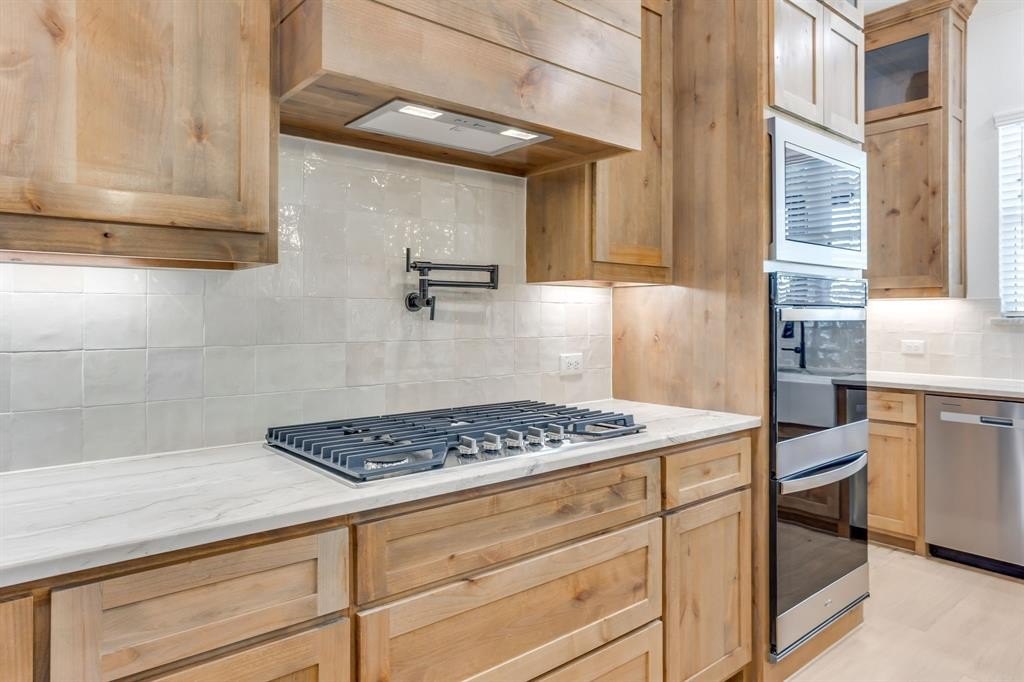 Property Description: PREMIUM UPGRADES! Set on a 1 acre corner lot on a cul de sac. This home is GORGEOUS! The kitchen is stunning with richly stained custom cabinetry and stunning QUARTZITE counters. It features a large island with storage, pot filler faucet, 36” cooktop, walk-in pantry, under-cabinet lighting, and soft close drawers and cabinets throughout kitchen - and entire home. Floor to ceiling stone wall makes the fireplace a beautiful focal point, surrounded by adjustable built ins for decor and storage. Primary suite combines space & functionality in the large bedroom, bathroom with freestanding tub, walk-in shower with standard shower head plus rain head, tile to ceiling; huge walk-in closet. The large utility room has tiled floors and second sink. Home includes 10-12 ft ceilings 8 ft doors throughout, blinds, gutters, custom epoxy garage flooring, 3 car oversized garage, and home is plumbed for gas. Covered back patio with fireplace & pre-wired for tv. Enjoy the beauty of country views but located less than 35 mins to Downtown Ft. Worth & less than an hour to DFW Airport. Builder, VictorE Homebuilders, includes warranty with purchase, pays survey & title. NO HOA, NO CITY TAXES. VE is offering incentives with preferred lender. VictorE Homebuilders: Family Inspired, Quality Built.