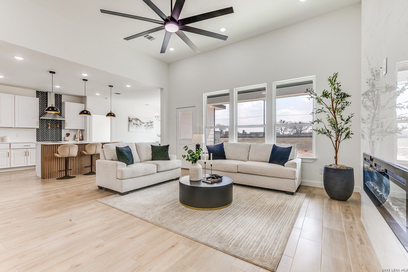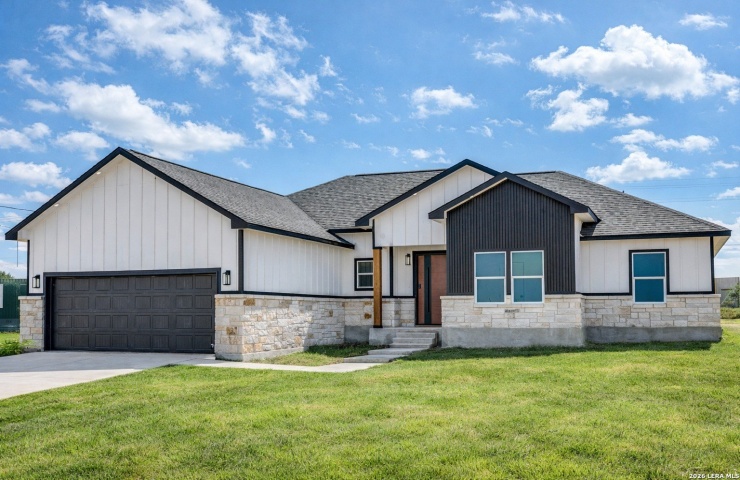 Property Description: Stunning brand-new custom home in Atascosa featuring striking stone elevation and modern accent colors. Situated on over half an acre outside city limits, this 4-bedroom, 2-bath home with 1,850 sq ft offers space, privacy, and modern design while being minutes from I-35 and San Antonio. Inside you'll find tile flooring throughout, soaring 12-ft ceilings in the living area, and a standout fireplace with white tile that gives a marble-look finish. The open-concept layout flows into a beautiful kitchen with custom cabinets, quartz countertops, pot filler faucet, and a spacious pantry with built-in cabinets and shelving. The bathrooms are designed with a luxury magazine-style feel, featuring elegant layouts and gold fixture finishes that add a modern upscale touch. The home is also highlighted by a custom steel front door with wood appearance and black designer finish, creating a bold and stylish entrance. The expansive lot provides plenty of room for outdoor living and future possibilities. Move-in ready and priced right-schedule your showing today and submit your offer before it's gone.