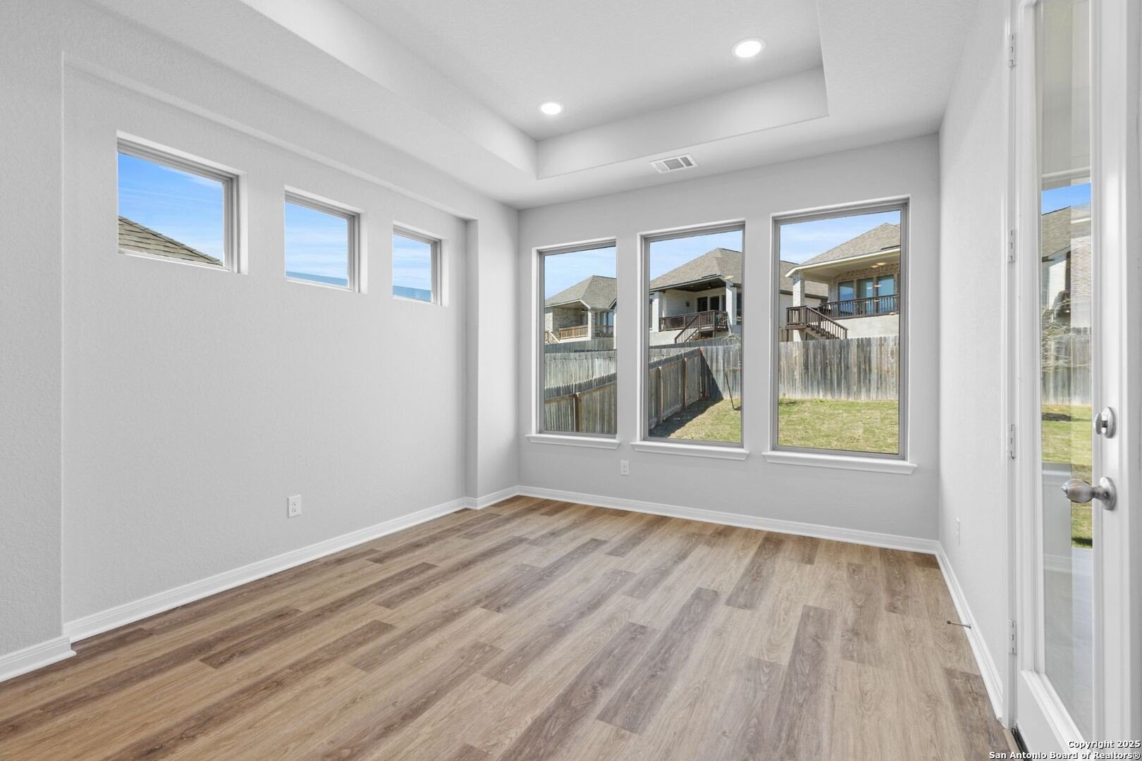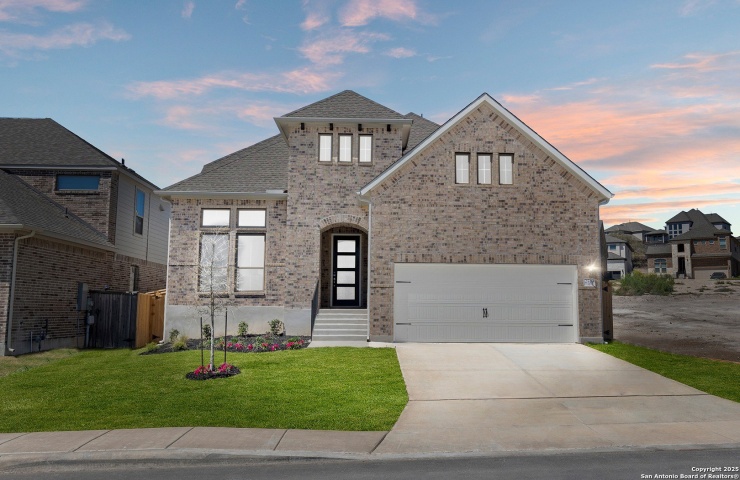 Property Description: Welcome to the stunning Dumont plan, located in the exclusive gated section of Ladera. This home is designed to check all the boxes and meet your family's needs. As you enter, the foyer welcomes you with a perfect blend of elegance and sophistication, featuring a tall, light-filled entry that opens to the second floor. You'll find a secondary bedroom and an adjacent full bath. The private study provides a quiet space for tackling daily commitments. The family chef will love the oversized kitchen island, complemented by built-in stainless steel appliances and a gas cooktop. The primary suite is a true retreat, showcasing a recessed tray ceiling and elegantly positioned windows that flood the space with natural light. You'll appreciate the primary bath, featuring separate vanities, a large garden tub, and a generous separate shower. The spacious closet offers ample room for all your treasured belongings. Upstairs, the bright and open game room serves as the perfect gathering spot for movie nights and family fun. Step outside to the Texas-sized patio, where you can create lasting memories with loved ones. Visit your dream home today!