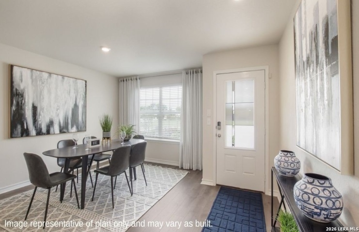 Property Description: Introducing The Lombardi, a two-story home featured in our Steele Creek community in Cibolo, TX. This floor plan offers 3 classic front exteriors, a 2-car garage, and a full yard landscaping and irrigation package ensuring that your home looks its best every single day. Inside this 5 bedroom, 2.5 bathroom home, you'll find 2539 square feet of open-concept living. A deep-set, covered porch (per plan) opens to a foyer, formal dining room, and powder room. A butler entry connects the dining room and spacious kitchen lined with abundant cabinetry and quartz-top counterspace. Classic white subway tile backsplash and stainless steel appliances are a perfect accent, and a kitchen island with a deep single basin kitchen sink faces the living room. The private main bedroom suite is located off the living room and features a luxurious garden bath tub, a separate walk-in shower with tile surround, double vanity sinks, ceramic tile flooring, a separate door for the toilet and a large walk-in closet. Head up the stairs and tour the second floor of your brand new home! A versatile loft area greets you at the top of the stairs, complete with quality carpet and tons of natural light. Your four secondary bedrooms are located off the loft and include carpet flooring and spacious walk-in closets. Additional features include 9-foot ceilings, 2-inch faux wood blinds throughout the home, luxury vinyl plank flooring in the entryway, living room, kitchen, and dining room, ceramic tile at all bathrooms and utility room, pre-plumb for water softener loop, and more! You'll enjoy added security in your new home with our Home is Connected features. Using one central hub that talks to all the devices in your home, you can control the lights, thermostat and locks, all from your cellular device.