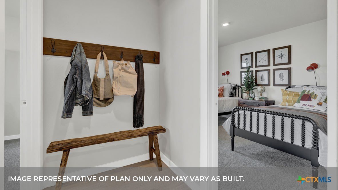 Property Description: MAY ESTIMATED COMPLETION. The Irving is one of our most popular floorplans at Hartland Ranch. This one-story home includes 5 bedrooms, 3 bathrooms, and a study within 2,592 square feet of living space and a 3-car garage. As you enter the home from the covered front porch, you'll cross the foyer to the dining room, family room and kitchen. This large open concept space is perfect for entertaining and everyday living. The kitchen includes an island with undermount sink, quartz countertops, decorative tile backsplash, a corner pantry closet, stainless-steel appliances and 36 upper cabinets. The utility room with an extra closet is located just off the kitchen. Check out the primary bedroom, located at the back of the home. This oversized bedroom will become your oasis at the end of the day. Enjoy the 5' walk in shower, raised cultured marble vanity with double sinks and toilet area with a separate door. A walk-in closet with generous shelving is connected to the bathroom. In the opposite rear corner of the home, you'll find Bedroom 2 and Bath 2. This private space could be perfect for your guests or any family member that needs their own space. At the front of the home, you'll find the additional 3 bedrooms and Bath 3. Each secondary bedroom includes a closet with shelving, and the secondary bathrooms include a shower/tub combination and shelving for extra storage or decor. The study is off the family room and features a closet as well. With all the space the Irving offers, your family is sure to love this plan. The Irving includes vinyl flooring throughout the common areas of the home and the primary bedroom, and carpet in the secondary bedrooms. All our new homes feature a covered back patio, full sod, an irrigation system in the front and back yard, and full gutters. This home features our America's Smart Home base package, which includes the Video Front Doorbell, Front Door Deadbolt Lock, Home Hub, Thermostat, and a Smart Switch.