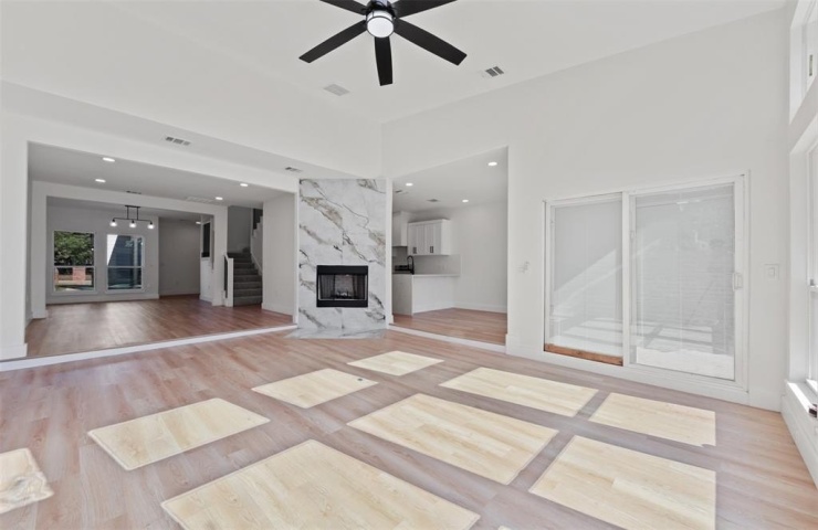 Enjoy a bright and airy living room with a cozy fireplace, perfect for relaxation or entertaining. The modern kitchen boasts quartz countertops, stainless steel appliances, and ample cabinetry—ideal for any home chef.