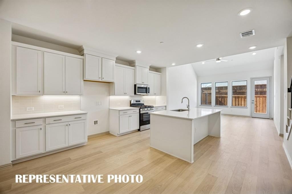 Property Description: CB JENI HOMES EVA floor plan. This beautifully designed EVA floor plan offers 3 bedrooms, 2.5 baths, and a highly desirable downstairs primary suite. The home features a dramatic vaulted ceiling in the living room, creating an open, airy atmosphere filled with natural light throughout. The main level showcases elegant hard-surface flooring, an expansive living area, and a gourmet kitchen ideal for both everyday living and entertaining. The kitchen is appointed with an oversized island, sleek quartz countertops, stainless steel appliances, a gas range, and exterior venting. The spacious primary suite on the main level provides a private retreat, complete with an elegant ensuite bathroom featuring dual vanities, a large walk-in shower, and an oversized walk-in closet. Upstairs, you’ll find a generous game room, two well-appointed guest bedrooms—each with walk-in closets—and a large shared bathroom with double vanity. Abundant storage is thoughtfully incorporated throughout the home. Step outside to enjoy the fenced backyard with an oversized patio, perfect for outdoor entertaining or relaxing. With numerous upgrades and design features throughout, this home offers exceptional comfort, style, and functionality.
