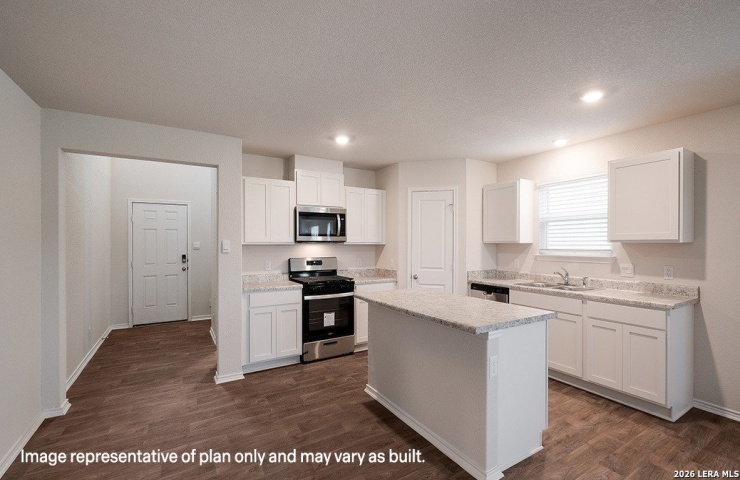 Property Description: The Stanley is a two-story home featured in our Solana Ridge community in San Antonio, TX. Offering 3 classic front exteriors, 1-car garage and full yard landscaping and irrigation, this home is sure to impress. Step inside this 4 bedroom, 2.5 bathroom home to find 2243 square feet of open concept living. Whether you're cooking, enjoying a meal or entertaining, you'll never be far from the action with a beautifully blended kitchen, dining area and living room. With quartz counter tops, stainless steel appliances and shaker style cabinetry, this home's kitchen was designed with you in mind. You'll also love a roomy, single basin sink, a spacious corner pantry and an oversized kitchen island with plenty of workspace. A versatile, open to below loft greets you at the top of the stairs and is a perfect play room or entertainment area. Quality carpet and large windows that provide natural light make this a well rounded space. The primary bedroom is located upstairs and is built with an attractive ensuite bathroom. The main bathroom features a quartz vanity counter top, a combined shower and bath tub and a grand walk-in closet with built-in shelving. A second full bathroom and all secondary bedrooms are also located upstairs. Whether you are using these rooms as bedrooms or other bonus spaces, all include quality carpet and closets. Additional features include sheet vinyl flooring in entry, living room, and all wet areas, quartz bathroom counter tops and our HOME IS CONNECTED base package. Using one central hub that talks to all the devices in your home, you can control the lights, thermostat and locks, all from your cellular device.