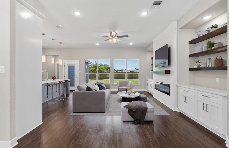 Property Description: Welcome to this spacious and beautiful new construction home on a large lot, offering four bedrooms, two full bathrooms, and two half baths(one half bath is located off the back covered patio area) The island kitchen features a neutral color scheme and quartz countertops, while the family room boasts a built-in electric fireplace. Enjoy an open and airy feel with 10' -13' ceilings in the entertaining areas. The builder aims to have this stunning property ready for occupancy by May 22nd, just in time for summer! Contact us today for more information and to schedule a private tour. Your dream home awaits!*Note: the professional pictures are from a similar home - colors and materials may vary. Let's go see it!