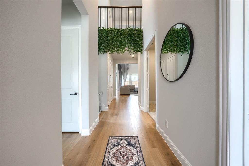From the moment you pull up, the home’s curb appeal stands out with professional landscaping and a custom app-controlled exterior lighting system. Step through the front door to find soaring high ceilings accented by motorized designer curtains, creating an atmosphere of airy sophistication.