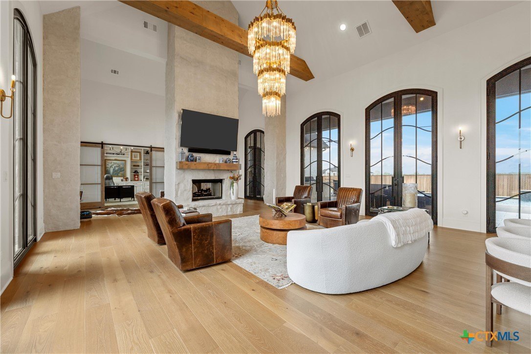 Property Description: Experience unparalleled elegance and sophistication in this stunning Global Luxury residence nestled in Lorena ISD. With 4 spacious bdrms, 4.5 luxurious baths, and an expansive 3-car garage, this home offers a seamless blend of comfort and opulence. One bedroom has efficiency kitchen and can double as a mother-in-law suite or gameroom. The interior boasts a striking barrel ceiling, highlighting the home's architectural flair. The double-sided fireplace provides a perfect blend of warmth and style, creating an ideal ambiance for lavish gatherings or quiet evenings. A separate study offers a serene space for productivity or reflection. 12' tinted windows & doors create such drama and bring in the perfect amount of light. The exquisite kitchen features 30in Thermador Refrigerator and Freezer, ZLine Gas Range with double oven, pot filler, convection microwave, and separate wall oven. The large island is where everyone gathers! There is a separate walk through pantry with additional fridge and sink. The 2nd laundry room is spacious with lots of storage. The primary suite is a sanctuary of its own, featuring a cozy fireplace and double doors that open onto a private path leading to the hot tub and pool. The primary bathroom features 2 expansive walk-in closets, with one offering washer dryer connections. Indulge in the spa-like atmosphere of the garden tub and the walk-in shower equipped with dual showerheads. Dual vanities enhance the sense of luxury, offering plenty of space for everyday routines. The exterior is equally impressive, with stone and German schmear siding exuding timeless appeal. A thoughtfully designed lighted pathway leads you to the grand main entrance. The outdoor space is an entertainer's delight, featuring a covered patio that seamlessly transitions to a built in outdoor grilling area, hot tub, and sparkling pool, perfect for alfresco dining and entertaining under the Texas stars.