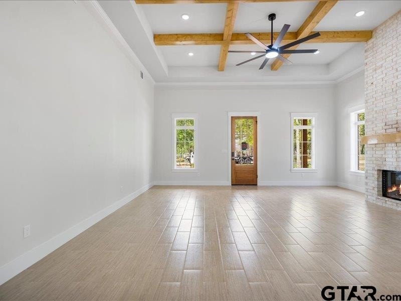 Property Description: Welcome to your dream home! Nestled on a spacious 0.50-acre lot with a serene front water view, this stunning 2,136 sq. ft. new construction offers timeless elegance, modern comfort, and thoughtful details throughout. Located just across the road from the lake, you’ll enjoy lakeside living in a beautiful, peaceful community—only 22 minutes from Tyler and within Arp ISD. Step inside to soaring 10 ft ceilings throughout and a breathtaking 12 ft coffered ceiling in the living room, complete with a cozy brick fireplace and abundant natural light. Expansive 7 ft x 4.5 ft island, Stainless steel appliances, including side-by-side refrigerator, Built-in microwave/oven combo & electric cooktop. Elegant shaker-style vent hood & cabinets, Walk-in pantry for ample storage. Primary Suite Retreat offers a spacious bedroom with vaulted ceiling overlooking the side yard. Spa-like en suite with dual vanities, generous cabinetry, standalone soaking tub, and glass shower with rain head. Additional Features include two guest bedrooms with Jack & Jill bath featuring tub, tile surround, and glass enclosure. Dedicated office with built-in desk & cabinetry, Smart thermostat & heat pump for efficiency. A 2 car insulated garage and garage doors for added comfort and storage. Outdoor Living offers: Expansive 18 ft x 22 ft covered side porch with built-in brick grill, sink, and refrigerator—perfect for entertaining. Sprinkler system, aerobic septic, privacy fence, and gutters. Tons of character and custom details throughout. 1-2-10 Builder Warranty included for peace of mind. Enjoy the best of lakeside living with space to relax, entertain, and thrive. Don’t miss this opportunity to own a one-of-a-kind home with breathtaking views and modern luxury.