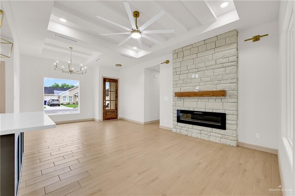 Property Description: Brand-new construction in Edinburg offering a refined blend of comfort and style. This thoughtfully designed 3-bedroom, 2-bath home features an open-concept layout that feels both spacious and functional. A luxury feel is found throughout the home, with elegant gold accents and a striking stone fireplace accent wall that anchors the living space. Modern farmhouse influences add warmth and charm, creating a calm, inviting atmosphere. Clean lines, soft finishes, and a well-balanced design make this home ideal for both everyday living and quiet enjoyment. A tasteful, move-in-ready retreat with understated character.
